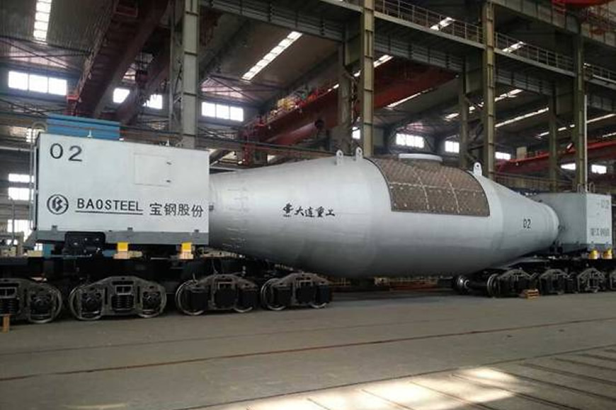 混鐵水車是供冶金企業運送高爐鐵水至轉爐車間、鑄鐵機車間和鑄錠車間進行傾翻鐵水作業的專用冶金車輛。大連重工研制的200噸至450噸魚雷型混鐵車和筒型混鐵車,產品市場占有率95%,并出口日本、美國、印度、土耳其、巴西、越南和阿爾及利亞等國家和地區。
