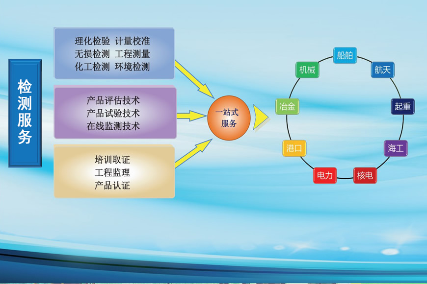 檢測服務方面,大連重工現有檢測業務服務范圍涵蓋理化檢驗、計量校準、無損檢測、產品綜合檢測等方面,擁有測量設備2000多臺(套),有約50名國家注冊一、二級計量師、高級工程師等專業人員,檢測業績主要涉及國內外港口、散料、起重、冶金、核電、風電、火電、水電、海工等領域。